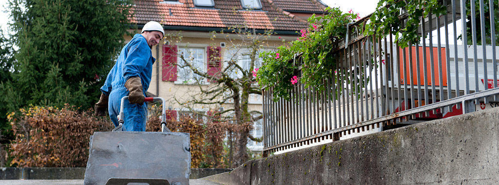 Die für die Bodenfläche vorkonfektionierte Abdichtungs-folie wird unter dem leicht angehobenen Tank so durchgezogen, dass sie glatt und faltenlos auf dem unteren Schutzbelag aufliegt. An den Wänden werden die Folienbahnen auf das erforderliche Auffangvolumen angelegt und mit einer aufgeschraubten Metallschiene befestigt. Die hängenden Folienbahnen werden untereinander und mit dem Bodenbelag thermisch zu einer flüssigkeitsdichten Auskleidung verschweisst. Aussen- oder Innenecken werden mit vorkonfektionierten Eckstücken verstärkt.